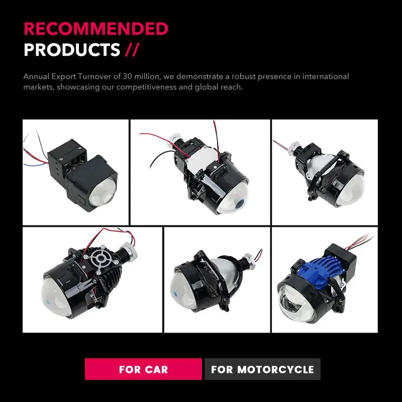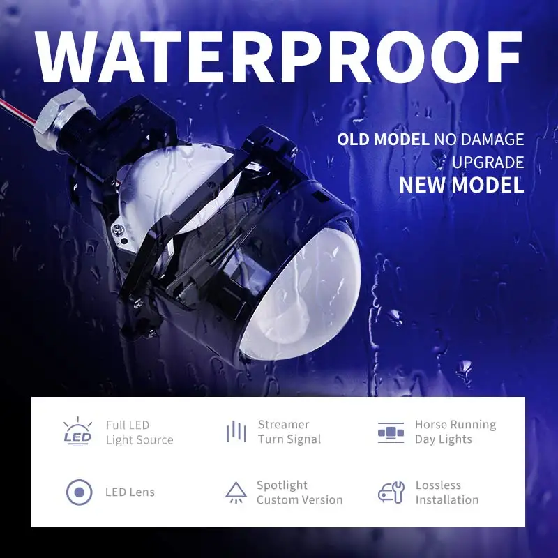 Ruwan tabarau na Motar Mota na Duniya 2.5 Inci 60W Babban Kofin Dual Cup LED Bi LED Projector Motar Hasken Motar Retrofit 6000 Lumens