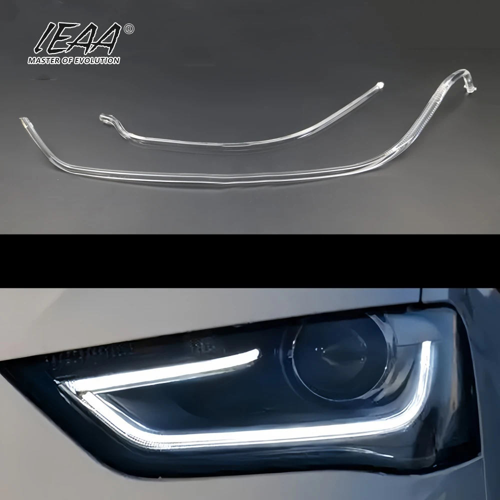 Strip Panduan Cahaya LED dengan Sumber untuk Audi A3 2013-2016, Lampu Headlight Siang Hari, Strip Panduan Cahaya Headlight Depan